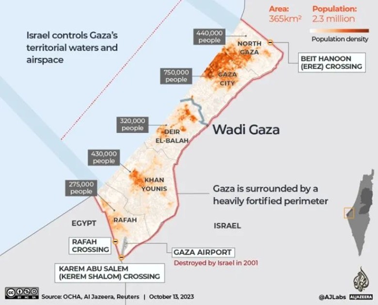以色列要求加沙平民全部搬至加沙河(圖中藍線位置)以南,半島電視台製圖 當地時間10月13日下午,聯合國安理會就加沙局勢在紐約舉行了閉門會議。秘書長古特雷斯在進入會議廳通報前對記者表示,加沙局勢“已極度危險”。 針對以色列方面提出加沙地帶北部110萬平民限期24小時南撤的要求,古特雷斯重申,在加沙整個地區陷入圍困的情況下,讓一百多萬加沙人穿越人口稠密的戰區,遷移到一個沒有食物、水或住宿的地方,是極其危險的,在某些情況下,根本不可能成功遷移。 截至目前,巴以本輪衝突已造成雙方超過3500人死亡。巴勒斯坦衛生部門公佈的統計數字顯示,截至當地時間14日11時55分,巴以爆發新一輪衝突以來,加沙地帶已有2215人死亡,8714人受傷;約旦河西岸有54人死亡,1100多人受傷。此外,據《耶路撒冷郵報》13日晚報道,以色列衛生部數據顯示,自本輪巴以衝突以來,以方死亡人數超過1300人,受傷人數至少達到3484人。 與此同時,加沙當地人道主義危機在日益加劇。據聯合國網站消息,聯合國近東巴勒斯坦難民救濟和工程處主任專員拉扎里尼警告說,整個加沙地區已經有超過42.3萬居民流離失所,其中27萬多人在近東救濟工程處的庇護所避難。 據中國外交部網站消息,10月13日,中共中央政治局委員、外交部長王毅在北京同歐盟外交與安全政策高級代表博雷利舉行第十二輪中歐高級別戰略對話。