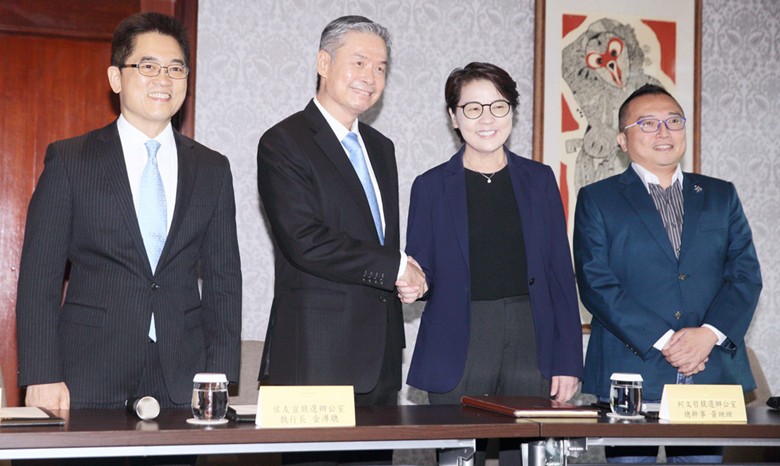 “藍白合”會前會14日在台北福華大飯店舉行,國民黨祕書長黃健庭(左起)、國民黨總統參選人侯友宜競辦執行長金溥聰、民眾黨總統參選人柯文哲競辦總幹事黃珊珊與主任周榆修出席,會前一起合影。圖自台灣中時新聞網 會議雙方禮遇做足 據台灣《聯合報》15日報道,這場在野力量整合會議中,民眾黨派出的是柯文哲競選總幹事黃珊珊、柯競辦主任周榆修,國民黨派出侯友宜競選辦公室執行長金溥聰、國民黨秘書長黃健庭。 雙方針對產生在野最強候選人的方式、公開辯論方式、整合時程以及雙方的政治主張進行討論,并達成一些共識。 藍白陣營都同意,在確認在野最強候選人產生方式後,參加由電視台主辦的3場辯論會;合作推動“立法院”席位極大化;未來黨團就議題進行合作,以民眾福祉為依歸;未來若合作取得執政權後,將組成“聯合內閣”。 金溥聰表示,會議充分溝通、氣氛融洽,達成一些共識,有些議題則保留看法。 侯友宜14日晚在臉書寫道,“我們與民眾黨主席柯文哲的團隊,已經為藍白合作,共同踏出了第一步”。 台灣《中國時報》注意到,由於雙方整合將牽動明年選舉結果,現場記者把記者室、走廊擠得水洩不通。 藍白雙方從會議室走出時,金溥聰先主動伸出手向黃珊珊致意,黃也立刻握手;步入記者會現場後,金溥聰更主動替黃珊珊拉椅子,展現紳士風度。 文章說,黃珊珊在參加協調會前曾提醒,“希望大家不要試圖在這次的會面中用話語、氣勢壓過對方,或是故意拖延破局”。 面對對方先兵後禮的態度,金溥聰在會場對黃說,“請您不要多心,我們一定秉持最大善意、用最誠懇態度來進行溝通”。 最後散場時,金再度讓黃珊珊先行,禮遇做足,希望藍白能够穩定再續前緣。