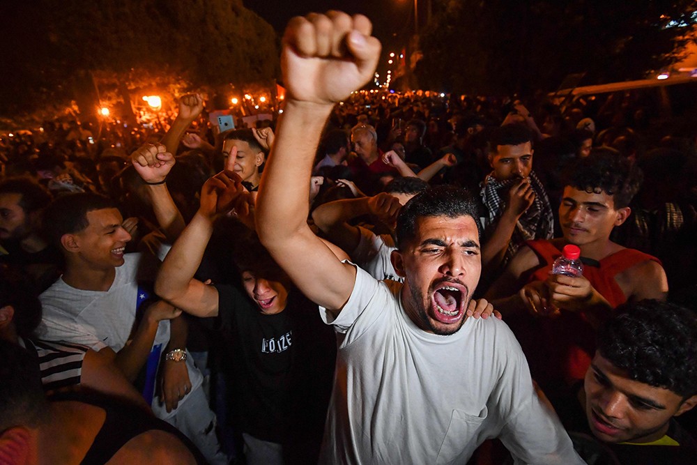 10月17日,突尼斯抗議者在法國駐突尼斯大使館前舉行反以示威活動。圖源:央視新聞 以軍空襲加沙城醫院令中東多地民眾爆發反以抗議集會。當地時間10月17日,突尼斯抗議者在法國駐突尼斯大使館前舉行反以色列示威活動。