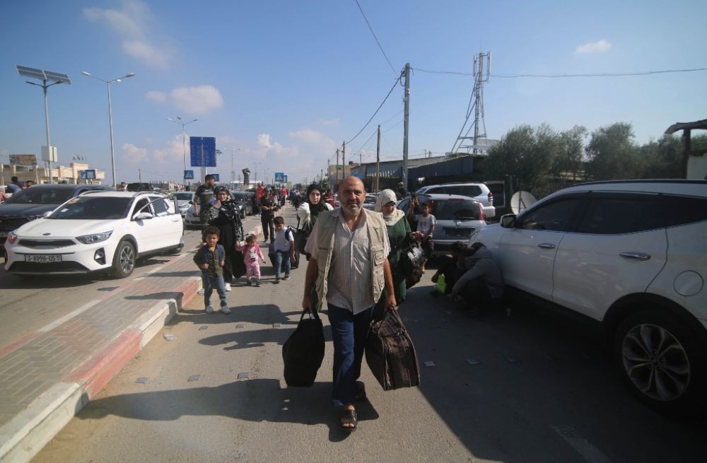 10月16日,巴勒斯坦人在加沙地帶的拉法口岸等待撤離加沙地帶。圖源:新華社 備受外界關注的拉法口岸16日依舊無法運轉。大量運載人道主義援助物資的車輛在口岸埃及一側等待。拉法口岸連接埃及和加沙地帶,是唯一不由以色列完全控制的加沙地帶入口。巴以新一輪衝突爆發以來,以色列對口岸巴方一側的轟炸導致口岸無法正常運轉。目前,各方正加緊斡旋,尋求口岸恢複通行。 (完) 【編輯:王軼南】