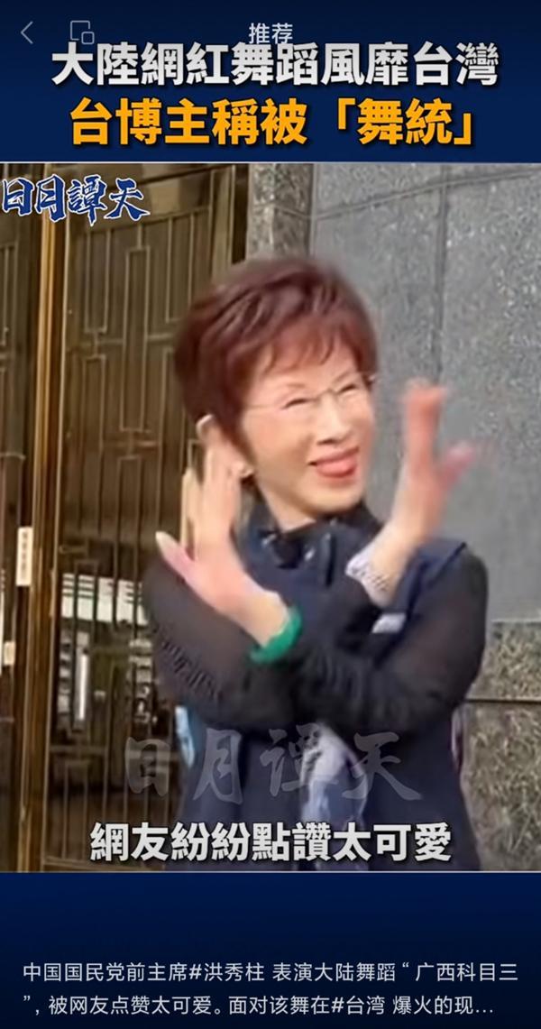 香港新聞網10月18日電 “廣西科目三,席捲全台灣!”最近一款抖音神曲舞步在島內火了,報出“科目三”這個關鍵詞,無論街頭巷尾、景點學校,島內年輕人說來就來,隨時“舞”給你看,用他們的話說:“我們全班都會跳喔”。 “科目三”的流行“病毒”火爆島內後,中國國民黨前主席洪秀柱也被“感染”,跟著台灣年輕人的示範也跳了一段,還表示“很簡單,小意思啦”,惹得網友紛紛點贊柱姐“好可愛”。