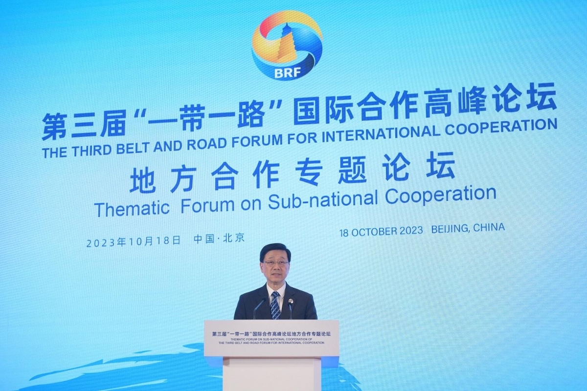 香港特區行政長官李家超在地方合作專題論壇致辭。香港特區政府新聞處網站圖片 第一,積極融入國家發展大局。李家超說,粵港澳大灣區總人口超過八千六百萬,經濟總量超過一萬九千億美元,相當於全球第十大經濟體。香港積極推動大灣區與“一帶一路”建設深度融合,攜手大灣區城市高水平地方合作,優勢互補,共同助力“一帶一路”高質量發展。 第二,全力推動對外貿易暢通。李家超今年率領香港特區高級別代表團,訪問中東和東盟國家,與當地企業和機構簽訂約50份合作協議。他說,香港已和全球20個經濟體簽訂自貿協定,並和31個經濟體簽訂投資協定,亦正爭取盡早加入全球最大的自貿協定《區域全面經濟夥伴關係協定》(RCEP),深化區域經濟協作。 第三,促進文明互鑒和民心相通。李家超說,香港是中西文化薈萃的國際都會,已與十多個“一帶一路”共建國家簽署文化合作備忘錄,推動地方之間的文化藝術交流。香港的文藝、創意專才每年走訪世界各地演出交流,推動傳統文化的傳承,同時與各地人民建立友誼。本月,香港首次舉行“亞藝無疆”藝術節,吸引20多個“一帶一路”國家參與,以藝會友。 第四,深化青年專業人才交流。香港特區政府在2016年推出“一帶一路奬學金”和“一帶一路”地區交流資助計劃,李家超表示,計劃已資助超過三千名香港大專生到“一帶一路”國家交流,以及來自約40個“一帶一路”國家的學生來香港就學。同時,香港積極動員專業力量,與“一帶一路”地區進行培訓協作,從鐵路技術營運、航客運輸管理,到電力工程、防貪倡廉教育等深度合作,促進地方建設。 李家超說,地方合作是共建“一帶一路”重要一環,香港會與各位攜手共進,繼續在不同層面共享共贏。(完) 【編輯:馬華】