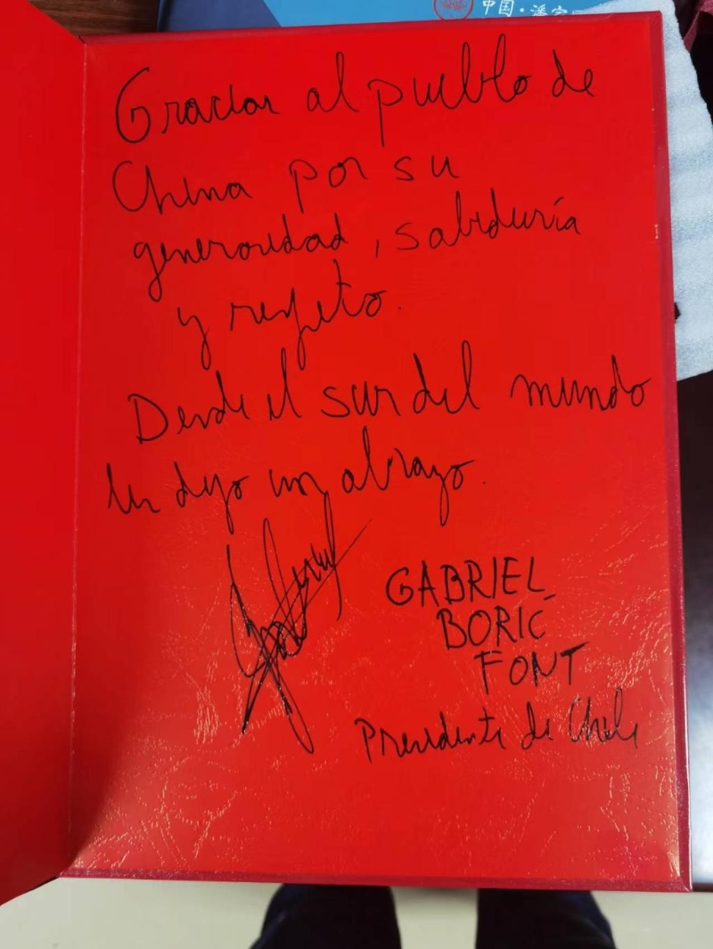 智利總統為潘家園舊貨市場留言。 博里奇還特別為潘家園舊貨市場親筆簽名留念,感謝中國人民的盛意、熱情和尊重,為自己的中國之行留下一段美好的回憶。 在之後的幾天里,博里奇爬長城、看故宮、買冰墩墩。據美國有線電視新聞網(CNN)智利版報道,他在長城的游客留言簿上寫道:“我很榮幸代表智利人民參觀這座長城,它代表了中國人民歷史上的和平使命,今天也象征著不同民族與自然的相遇。我們尊重它的歷史和未來。” 據智利《公民報》報道,博里奇指出,直接接觸中國文化非常重要,因為人們“通常把偏見放在首位以瞭解不屬於自己的文化”。 智利是唯一一個連續三屆“一帶一路”國際合作高峰論壇均由國家元首參加的拉丁美洲國家。儘管就任僅兩年,博里奇的政績卻有些耀眼。在他的帶領下,智利政府迎來了十年來首次財政盈餘,智利吸引外資總額也創下了自2015年以來的新高。 智利國內普遍認為,該國的經濟發展離不開與中國的合作。智利《第三日報》援引該國央行的數據稱,2022年,中國約占智利出口總額的40%,是該國最重要的貿易夥伴。 目前,智利已是中國第二大水果進口國,僅次於泰國。智利民眾還親切地將車厘子稱為“兩國的友誼大使”。 在結束此次訪華行程時,博里奇提到,除了銅、車厘子等產品的出口外,智利和中國將在更多領域展開合作,“我們在深化與中國的關係方面邁出了新的一步”。 中國社會科學院拉丁美洲研究所拉丁美洲區域合作研究室副主任蘆思姮指出,在對華關係方面,智利不僅是最早表態支持“一帶一路”的拉丁美洲國家,歷屆政府多次表示希望充當拉丁美洲和亞洲之間的橋樑,在中拉共建“一帶一路”的合作機制中發揮聯通和組織作用。雖然博里奇上台適逢新冠疫情肆虐,影響兩國的往來頻率,但在其執政兩年半的時間里,仍然高度注重發展與中國的關係。(完) 【編輯:王軼南】