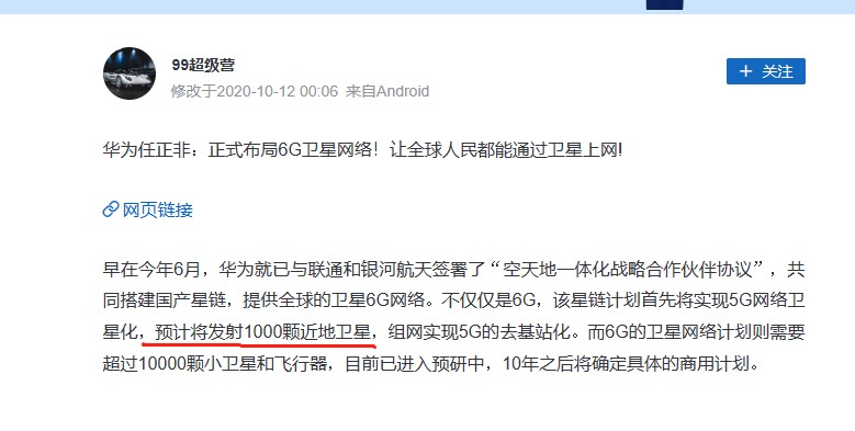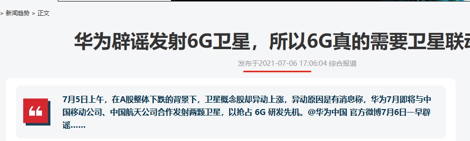 華為連夜官宣闢謠 香港新聞網記者搜索發現,類似的謠言其實不止在今年發生,早在2020年10月,內地某知名平台10月中旬發佈消息,稱有關華為“將發射1萬枚6G移動低軌衛星”的信息。 而2021年6月也曾發生過這樣的傳言。在稍後的7月,華為又闢謠。