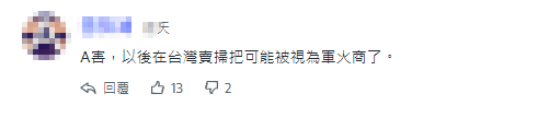 有台灣網友則諷刺稱,那以後在台灣賣掃把也可能被視為軍火商了……
