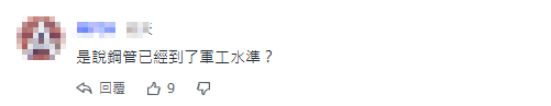 還有台灣網友表示,這說明大陸鋼管質量好,“已經到了軍工水準”。