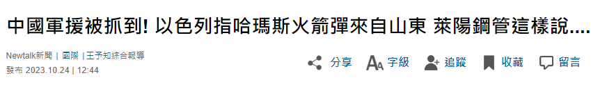 但台灣這家“綠媒”還是拿來充當巴以衝突“最新情況”,甚至在標題上大做文章,帶風向稱“中國軍援被抓到”。 對此,一眾台灣網友表示,美國賣軍火是民主自由,中國大陸賣鋼管就是支持戰爭,島內綠營“雙標”不要太明顯!