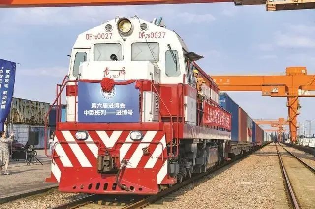 10月11日,裝載第六屆進博會參展展品的首列“中歐班列-進博號”列車抵達上海。圖自文匯報 比如,一個月以前,媒體就從美國半導體巨頭Micron(美光)處獲悉,美光將首次參加進博會,正為此積極準備。 知情人士稱,負責貿易和對外農業事務的美國農業部代理副部長兼農業部長貿易顧問賈森·哈夫梅斯特(Jason Hafemeister)以及美國農業部北亞事務高級顧問韋德·謝帕德(Wade Sheppard)的出席,標誌著首次有美政府高級別官員參加進博會,此前則為企業、貿易組織和地方官員參加。 美國大豆出口委員會首席執行官蘇健說,中美之間存在一些分歧,但美國農業方面的代表希望與中國保持良好關係。他還透露,自己的父親曾是飛虎隊飛行員,這讓他更有動力去推進中美交流。