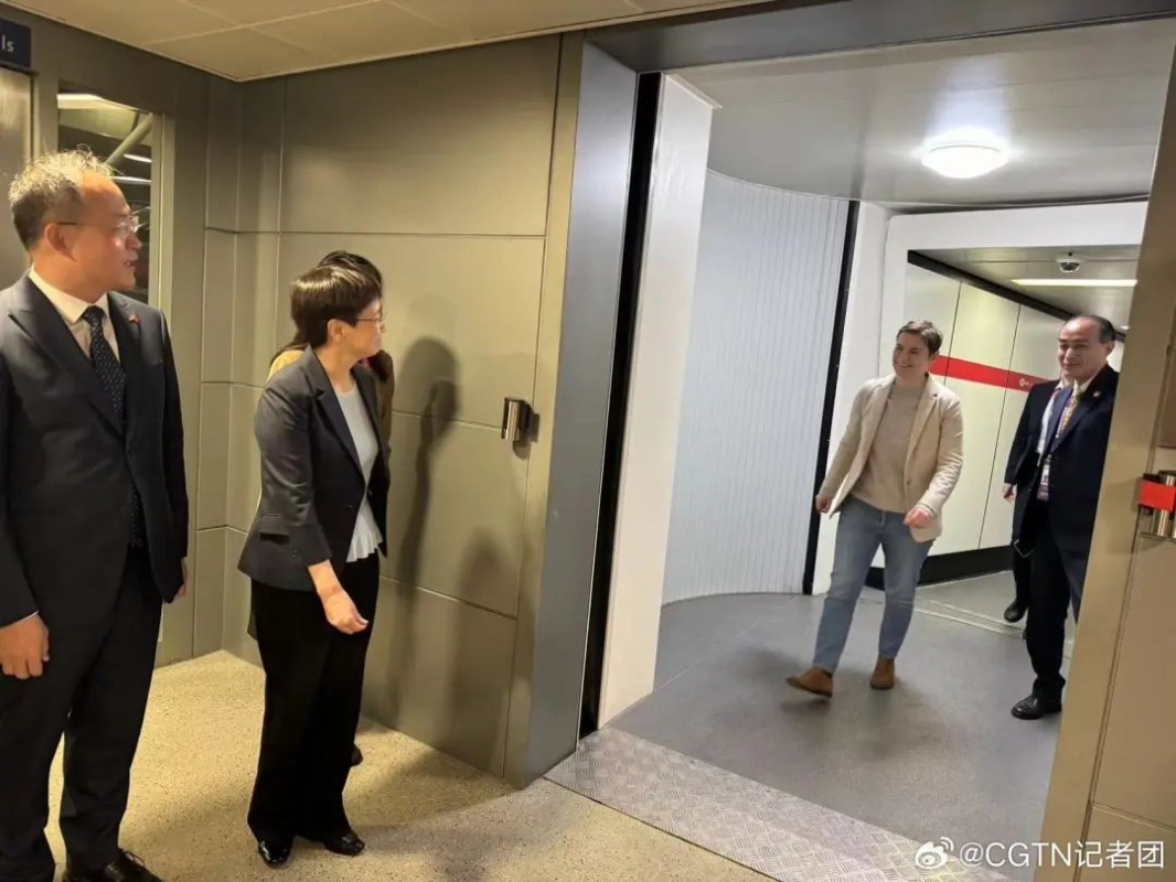 11月3日,塞爾維亞總理阿娜·布爾納比奇抵達上海。圖自CGTN