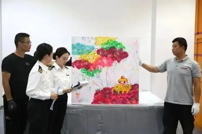 參加首批入館儀式的第五件展品是新一代奔馳Atego 1023 4x4越野旅居車。圖自澎湃新聞 據新民晚報報道,10月30日下午,在位於上海自貿區的上海國際文物藝術品保稅服務中心內,工作人員小心翼翼地搬運箱子,打開層層包裹,全球高人氣日本藝術家六角彩子的代表性畫作、美國當代著名波普藝術家傑夫·昆斯(Jeff Koons)的大型雕塑等進博會首批文化藝術品,在海關工作人員的仔細查驗下,逐一開箱登記審核,前往進博會場館。(見下圖)