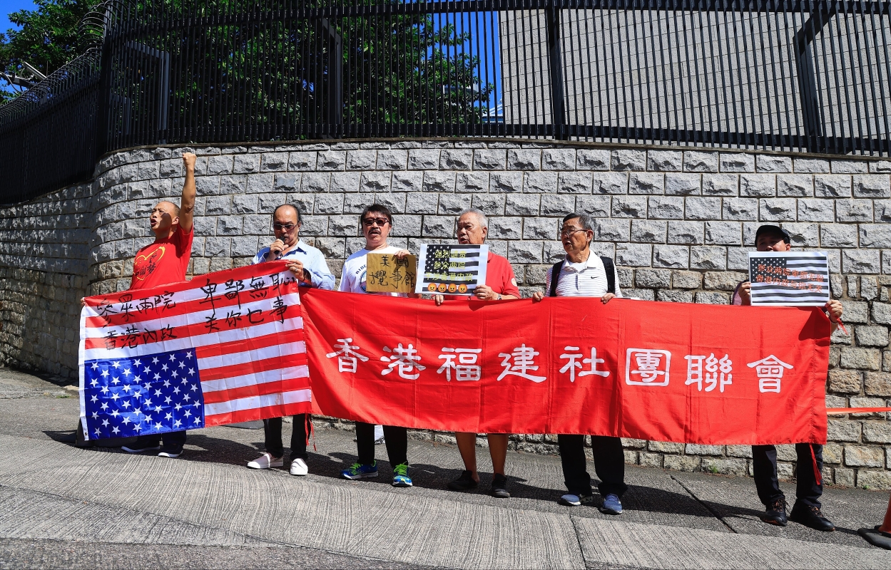 香港福建社團聯會在美國駐港澳總領事館前強烈譴責美國議員制裁提案
