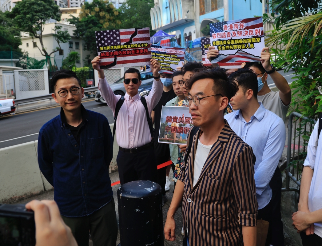 香港青年到美國駐港總領事館譴責美國國會跨黨派議員提出法案
