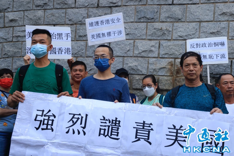 大批香港市民自發到美國駐港總領事館譴責美國國會跨黨派議員提出法案分享到: