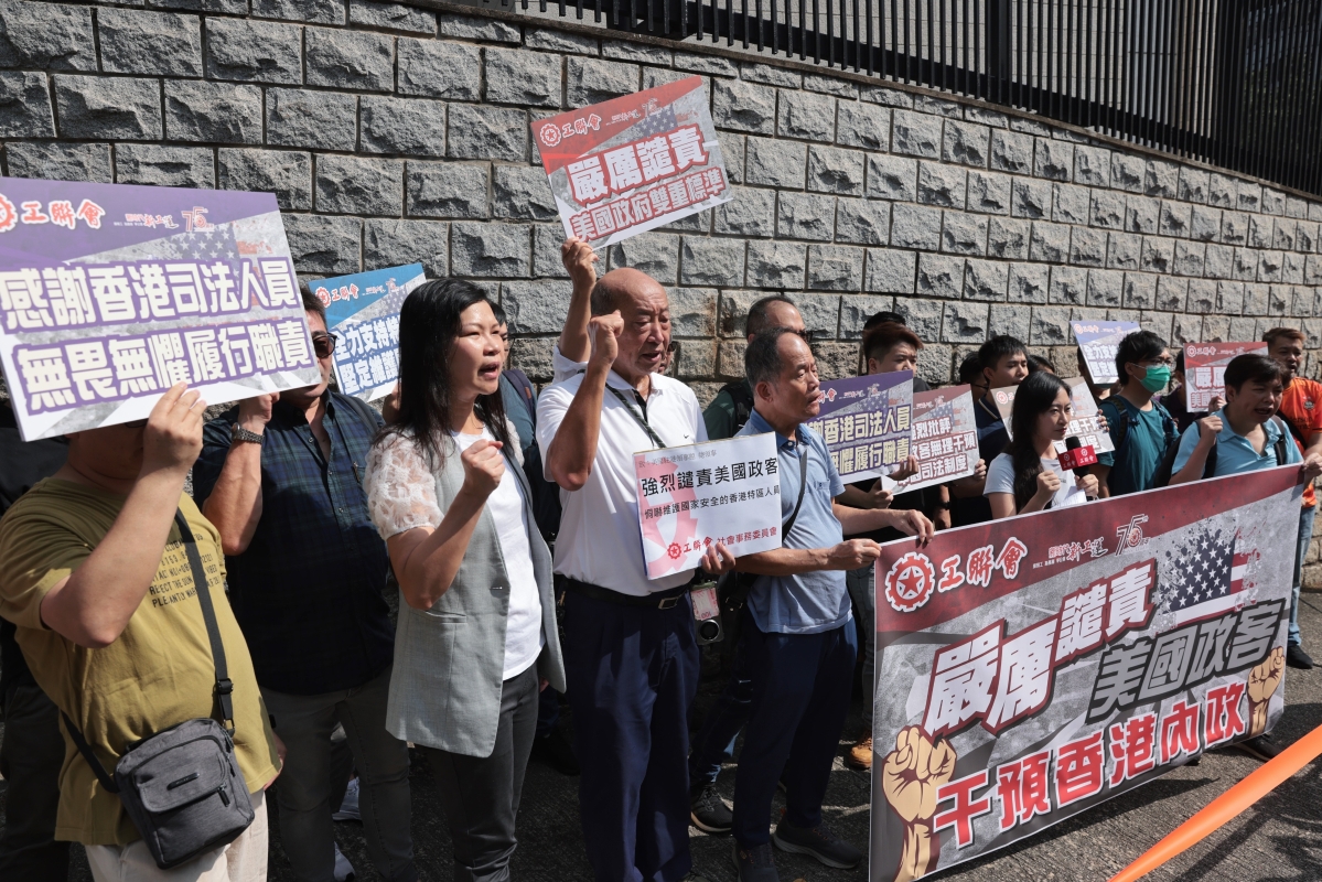新民黨主席、行政會議召集人葉劉淑儀譴責美國干預香港司法公正,強調香港國安法發揮止暴制亂的關鍵作用,也保護香港市民的人權和自由。 新民黨立法會議員黎棟國直言,法治是香港的基石,香港所有司法人員、政府官員一定會繼續無畏無懼、依法辦事,維護國家安全和香港社會秩序。 工聯會數十名成員於美領館外高呼口號抗議。工聯會立法會議員陳穎欣指,美國雙重標準;法治是香港重要基石,不容破壞。 民建聯發聲明表示,全力支持特區司法官員和司法人員根據香港國安法履行職責,維護國家安全和香港繁榮穩定。立法會議員周浩鼎指,美國議員的行為卑劣可笑,若繼續干涉香港,或違反香港國安法。 美國為救黎智英而發出恐嚇? 要“理解”美國此舉,不得不提這樣一個背景:壹傳媒創辦人黎智英涉嫌違反香港國安法等案件,將於12月18日開審。