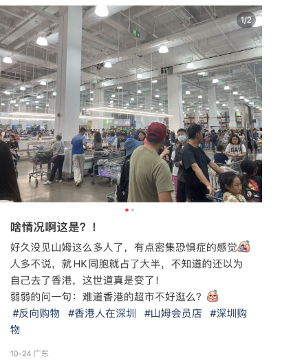 香港新聞網11月8日電 香港超市不“香”了?現在,深圳的大型特色超市也在北上港人的群體中火起來了…… 自今年2月,香港與內地恢復全面通關後,港人北上熱情高漲。近期,不少人發現,除網紅餐飲店外,深圳多個超市亦遍布香港人的身影。 “好久沒見山姆這麼多人了......香港同胞佔了大半,”有內地網友在社交媒體小紅書發文感慨,稱“不知道的還以為自己去了香港,世道真是變了!” 她又忍不住發問:“難道香港的超市不好逛麼?”