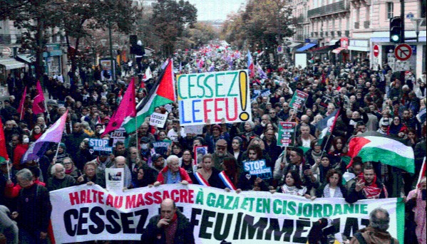 當地時間11日,英國倫敦爆發大規模支持巴勒斯坦的抗議遊行。(社交媒體視頻截圖) 綜合報道,在倫敦,抗議者們高呼“解放、解放巴勒斯坦”“立即停火”以及“從河流到海洋,巴勒斯坦將獲得自由!”等口號,進行抗議示威。倫敦警方表示,目前已有126人在抗議活動中被捕。 據報道,英國內閣大臣邁克爾·戈夫一度在倫敦維多利亞車站被親巴勒斯坦抗議者“圍攻”。此外,在另一段視頻中,戈夫在倫敦街道上行走時,抗議者跟著他高喊“你真可恥”。 11日晚些時候,英國首相蘇納克對遊行中的暴力事件予以譴責,同時批評了“親哈馬斯者”和高唱反猶口號的人,並補充說“所有犯罪行為都必須受到法律全面和迅速的打擊”。 報道稱,就在倫敦爆發大規模支持巴勒斯坦活動的同時,全球多地也舉行親巴勒斯坦集會,抗議以色列襲擊加沙、呼籲停火,其中包括西班牙巴塞羅那、法國巴黎、德國柏林、土耳其安卡拉、澳大利亞悉尼等多個城市。(完) 【編輯:石欢欢】