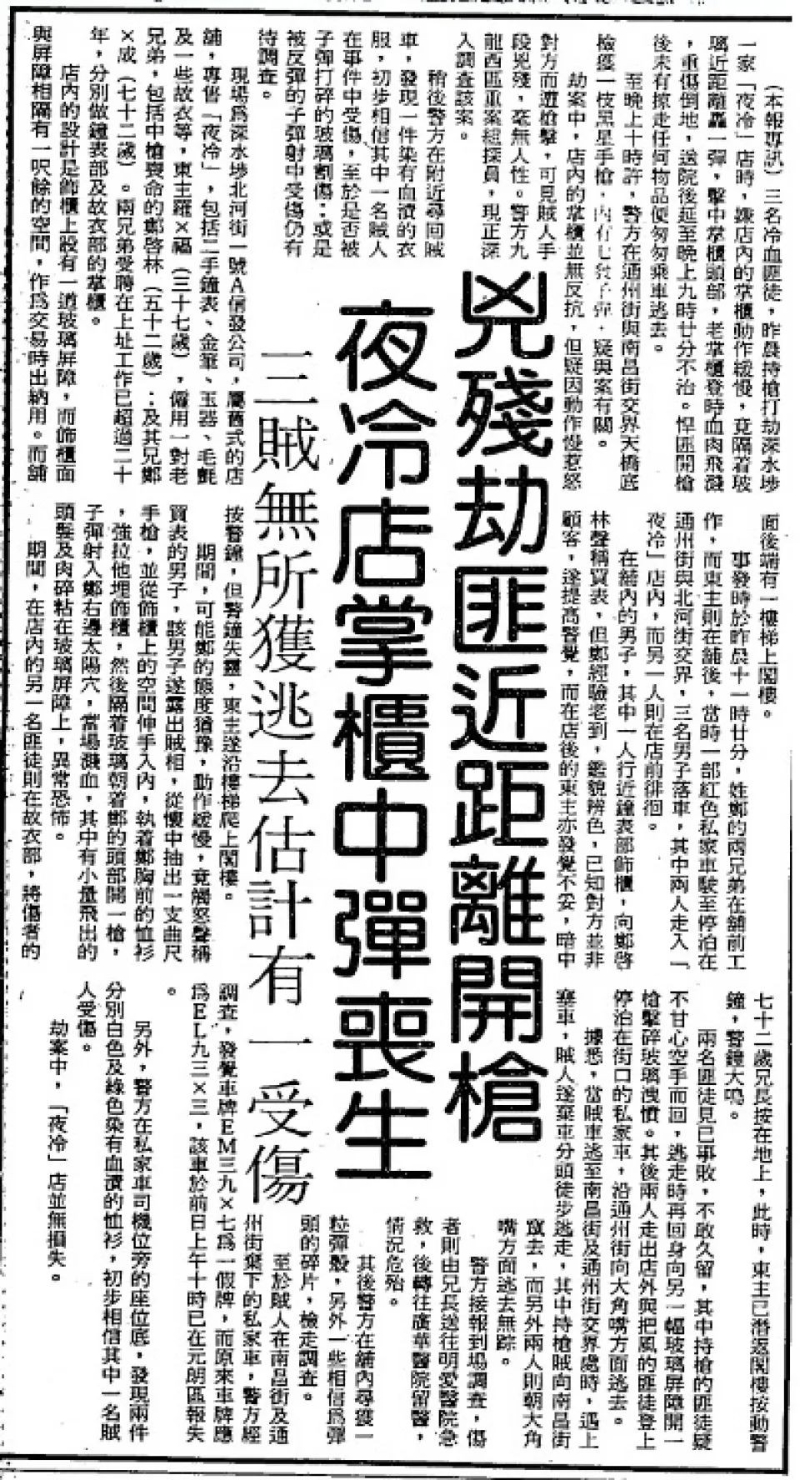 通說:他潛逃32年,一入境香港就被逮了香港西九龍總區重案組13日通報,近日拘捕一名59歲的男子,竟然與32年前的一宗劫殺案有關。 據重案組警司鐘雅倫公佈的信息,1991年6月9日,被捕疑犯與另外2人持手槍和鐵槌,闖入深水埗北河街一間金飾及表行行劫,其中一個人開槍射死一名男職員。另外兩人企圖用槌打爛玻璃櫃不成功,1人被玻璃割傷。3人事敗逃去,並在車上留下一件染血衣物。 這宗案件當年的媒體亦有大篇幅的報道。