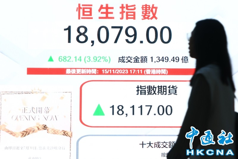 香港新聞網11月15日電 (記者 徐嘉儀)美國通脹降溫,市場加強聯儲局明年有望減息的觀點。恆生指數15日收報18079點,升682點或3.92%。大市成交額達1349億港元,為近兩個半月來最多。