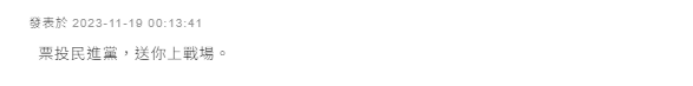 有人稱,“票投民進黨,送你上戰場。”↓