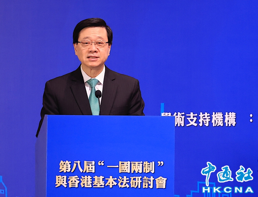 (香港中通社記者 曹文毓攝) 第三是要主動出擊,推廣“一國兩制”成就。李家超指出,要善用話語權,主動擴展香港的朋友圈。要把香港自由、開放和中外融合的實際情況、“一國兩制”成功實踐等真實的香港故事向世界說好。他計劃未來會繼續訪問內地和外地,包括東盟和歐洲國家,聯同香港各界領袖一起推廣香港的新優勢,為香港招商引才,鞏固傳統市場,並開拓新興市場。 最後一點是要居安思危,完善維護國家安全制度。他重申,當今的國際環境風雲變幻,複雜無常。在世界百年未有之大變局下,全球商界、投資者都尋求穩定而可預期的投資環境。《香港國安法》的實施效果立竿見影,使香港社會重回安定。特區政府視健全香港特區維護國家安全的法律制度和執行機制為重要責任。為此,特區政府將在明年完成《基本法》第23條本地立法,並把方案與《香港國安法》聯繫起來,完善特區維護國家安全的法律體系和系統。完成23條立法,一方面是履行香港特區維護國家主權、安全和發展利益的一份憲制責任,同時也是為了更好保障香港社會的繁榮穩定,使全球的企業和人才,都對香港更有信心,可以更放心來香港投資、營商、工作、生活,以至學習、深造。 李家超強調,只有確保“一國兩制”行穩致遠,香港才可以在安定的環境下實現新飛躍。特區政府已完善地區治理,重塑區議會,確保區議會重回《基本法》第97條所定下的原意,成為特區政府實施有效管治、保持社會穩定的諮詢組織。他深信,只要團結一心,香港必能堅守“一國”之本、發揮“兩制”之利,再創輝煌。 今年“一國兩制”與香港基本法研討會的主題是“開啓由治及興新階段,激發香港發展新動能”,各地專家學者齊聚共同商議香港在“一國兩制”和《基本法》下的發展機遇。 (完) 【編輯:孟宜君】