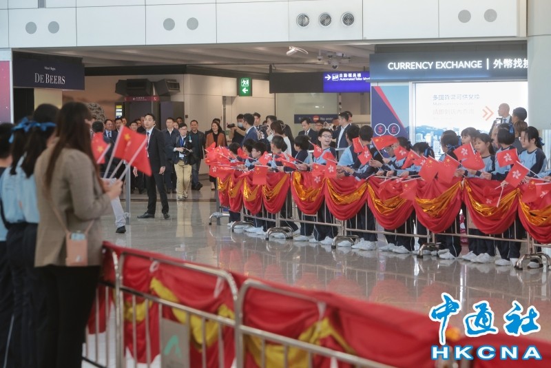 (香港中通社記者 謝光磊攝) 代表團由中國載人航天工程辦公室副主任林西强帶隊,成員包括參與中國空間站建造的神舟十二、十三、十四和十五號其中4位“航天員”,以及載人航天工程系統相關領域專家等共17人。一行人在今天中午12時許抵達香港,政務司司長陳國基、民政及青年事務局局長麥美娟、中聯辦副主任盧新寧、外交部駐港公署署理特派員李永勝等到場迎接。一批小學生手持國旗及區旗,在接機大堂歡迎代表團。有學生表示,對於能夠見到航天員感到興奮、激動,期待與航天員對話,了解在太空的生活等。另有學生都表示,自己從小喜歡太空,希望未來有一天能夠成為航天員。 代表團明天下午會出席在紅磡體育館舉行的“全港歡迎中國載人航天工程代表團大匯演”,亦會到科學館為“中國載人航天工程展”揭幕,並會出席活動與香港青年交流,與大中小學的師生和創科界的代表見面。民政總署今午1時起在20間民政諮詢中心免費派發共約5000張大匯演的門票,每人限取兩張。不少民政諮詢中心在開始派發後不久,已全數派發完畢。其中在位於九龍城的民政諮詢中心,有近20人提前到場排隊輪候,排頭位的長者表示提早在12時許便到場,認為機會難得,期望帶同孫女參加匯演,見識國家的強大及喜悅。 行政長官李家超今日出席行政會議前見記者表示,代表團訪港充分體現中央對香港的厚愛及支持。李家超對此表示熱烈歡迎,並感謝中央政府的安排。又指代表團訪港有三大意義,包括國家航天科技取得重大發展,令港人自豪;同時體現國家對香港青年及科技界的重視。
