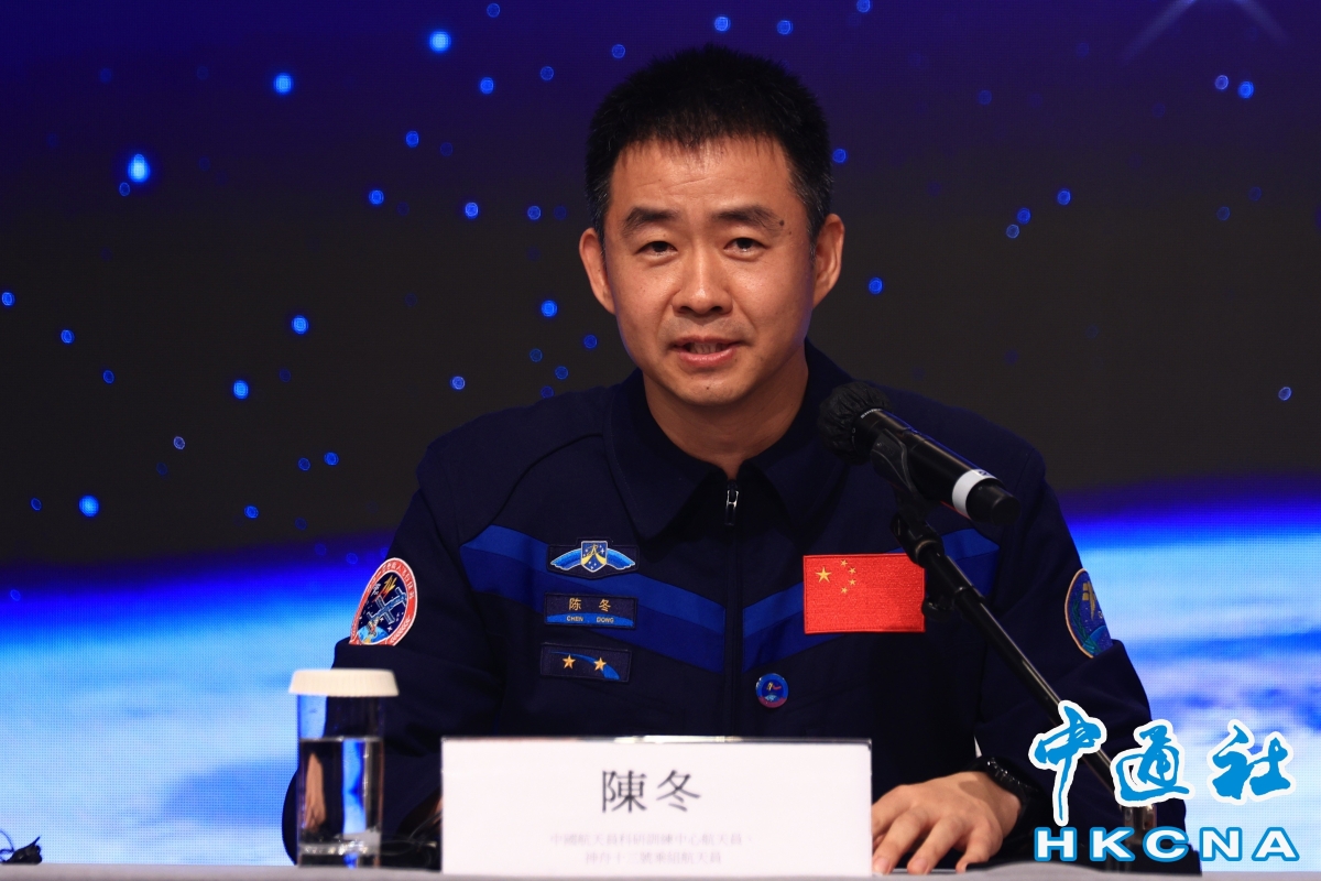4名航天員換上一身深藍色航天員秋冬常服,與其他成員一同亮相。(香港中通社記者 許其皓攝) 中國去年展開第四批預備航天員選拔工作,並首次在港澳地區選拔載荷專家。林西強指出,能明顯感到港澳在國家航天工程的參與範圍越來越廣,程度越來越深,展望未來,希望盡快看到港澳地區太空人進駐祖國的太空站,港澳科教界設計的應用載荷能在祖國太空站開展實驗,也期待港澳進一步發揮一國兩制制度優勢,用港澳所長為國家航天建設貢獻更大力量。