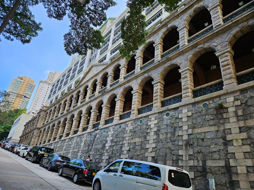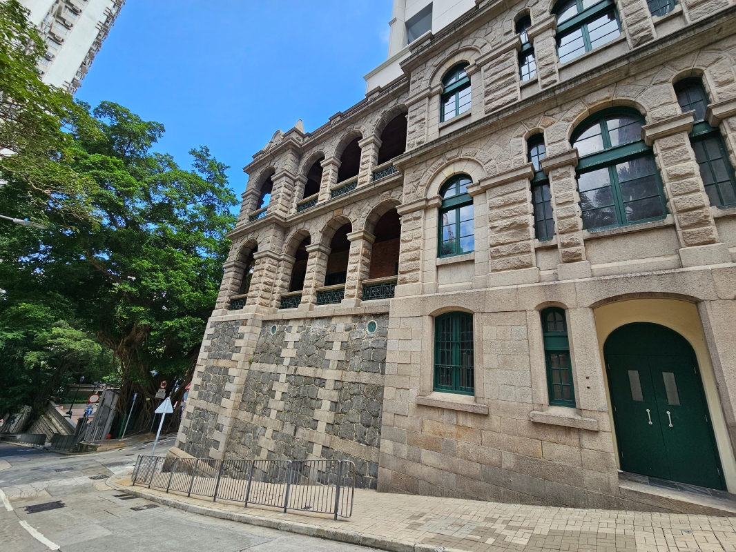 這裡最初是為醫院人員住所而設計及建造,攝於約1898年。 這座始建於1892年的建築,採用了早期巴洛克式的建築風格來建造,例如兩行排列整齊的拱門,內有寬闊的遊廊和下方配以粗琢的花崗石塊,外牆磨光的琢石線腳、隅石、檐口、腰線等都設計得精巧雅致。在不少殖民時期的建築物中,遊廊有一個重要作用,即適應香港的亞熱帶氣候,避免陽光直接照射室內,而遊廊裡的每一扇百葉門窗,其縫隙都有通風作用。