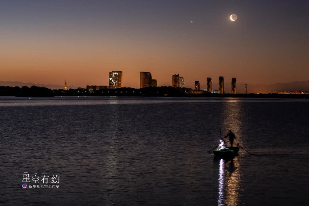 新華社圖片 據中國天文學會會員、天文科普專家修立鵬說,通常情況下,月球和金星是夜空中排名第一、第二明亮的天體,因此,金星合月在所有的行星合月中最受青睞。 修立鵬表示,10日零時53分金星合月,此時它們都在地平線以下,不可見。到了清晨5點左右,這兩個明亮的天體升出地平線,成為天邊的一對“顯眼包”,金星在殘月的左上角不遠處。正因為有了金星的“陪伴”,在遼闊的東方天空,月亮似乎也不是那麼“孤單和寂寞”。 據悉,一年當中,金星會以“啟明”和“長庚”姿態各持續數月時間,但不論是作為“晨星”還是“昏星”出現,金星都非常明亮,亮度始終在-3.9到-4.9等之間變化。進入12月,金星仍扮演著“啟明”的角色,日出前可見於東偏南方附近天空,如一盞明燈熠熠生輝,亮度在-4.2等至-4.0等之間變化。 值得一提的是,公眾在欣賞這幕“星月浪漫”的時候,還可以看到“新月抱舊月”這一天文現象。 修立鵬說:“新月抱舊月指的是地球反射太陽光所照耀的月球暗面,和被陽光直接照耀的明亮細月牙組成的月球。地球反射的太陽光也叫‘灰光’,只有在月牙很細的時候才容易被看到,月亮變‘胖’一些,就幾乎看不到了。”(完) 【編輯:李冉】