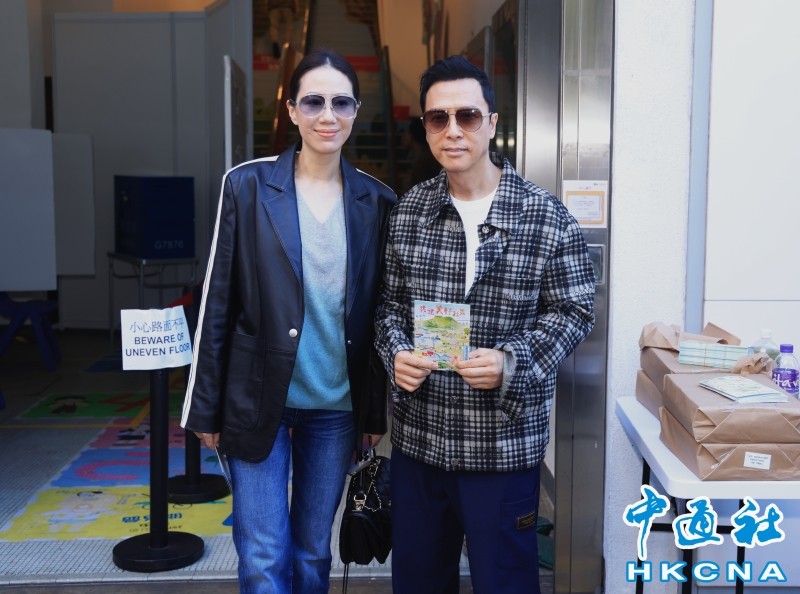 香港特區政府保安局局長鄧炳強及其夫人前往獻主會聖⻢善樂小學票站投票。香港中通社圖片 港區全國政協委員、著名電影明星甄子丹與太太汪詩詩,當天中午到港島西區投票。兩人以街坊休閒打扮到票站,約5分鐘完成投票,還問合影的粉絲“有沒有投票?”甄子丹對中通社記者說,投票過程很順暢,希望能選出幫國家、幫香港、幫市民的議員。