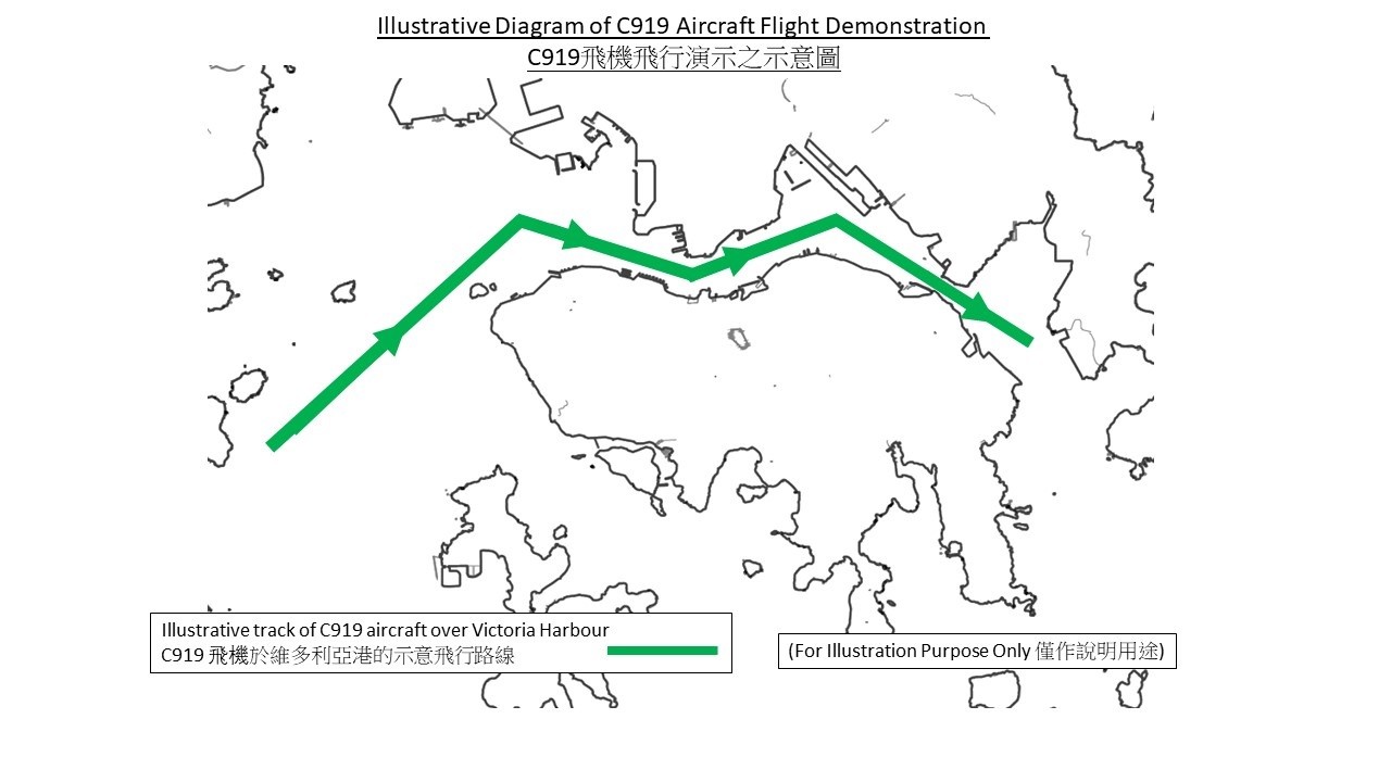 (香港中通社資料圖) 民航處指,若天氣情況許可,C919飛機將於16日上午飛越維港上空進行飛行演示,並預計於當日上午10時30分由香港國際機場起飛,自西至東進入並飛越維港上空兩次。市民可在維港兩旁,例如尖東海旁、觀塘海濱、鰂魚涌海濱花園、西九龍海濱長廊、中西區海濱長廊和金紫荊廣場等地方,觀賞到C919飛機的風采。
