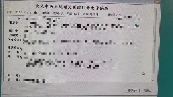 網傳電子病歷 圖片來源:央廣網 網絡上流傳的電子病歷疑似拍自電腦屏幕。其現病史一欄顯示,11日10:00時許,同事發現患者倒地,意識喪失,遂撥打120送醫,而在此前一周,患者咳嗽、喘憋,於家中自行吸氧,至事發前夜喘憋變嚴重。 體格檢測欄則顯示,患者意識喪失…… 由於上述病歷的患者欄中姓名、年齡、性別等內容與周海媚一般無二,被網民認為是有人有意洩露周海媚相關信息。13日下午,北京市順義區衞健委工作人員回應稱,已關注到相關情況,正配合當地警方調查,最終調查結果會通過官方權威平台進行公布。另據內地媒體報道,涉事醫院一名工作人員證實,流傳出來的病歷是真實的,“醫院正在調查該病歷是如何洩露的。” 據香港文匯報報道,13日,記者走訪涉事醫院,在醫院門診樓前有數輛警車,有警察對醫院工作人員進行問詢,但急診室大廳內就醫秩序並未受任何影響。對於周海媚及病歷外洩問題,醫院工作人員均閉口不談。