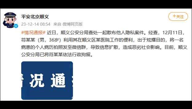 香港新聞網12月14日電 12日晚,香港著名女演員周海媚工作室發聲明,宣布周海媚因病去世,年僅57歲。隨後,疑似周海媚送醫搶救的電子病歷,以圖片形式出現在網絡上並迅速發酵。病歷外流事件引發網民憤慨和譴責,北京市順義區衞健委及轄區警方亦在對相關事件進行調查。 據內媒13日晚間報道,涉事醫院工作人員向記者證實,網傳病歷確係該醫院真實病歷。涉事2名人員已被移交警方,其中1人為醫院職工,另一人為該職工的朋友。目前涉事職工已被暫停執業,醫院正等待警方進一步調查結果。