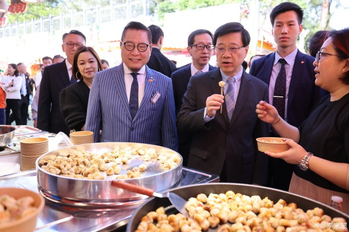 (圖源:李家超微博) 香港中華廠商聯合會會長史立德致辭表示,今屆展會已完全回復至疫情前的壯觀盛況,場內設有逾900 個攤位,不少本地知名品牌相隔多年再度回歸參展。 今年工展會恢復了熟食區,各種美食,包括燒龍蝦、焗扇貝、蛋撻、牛肉粒等,都是即點即製。有參展商告訴中通社記者,看好今年的生意,不擔心市民北上內地消費影響營業額,因為自己賣的東西夠便宜,自然會吸引客人來。一大早就排隊等入場的陳婆婆則告訴記者,打算買一些海味和臘腸,用來過冬至節。