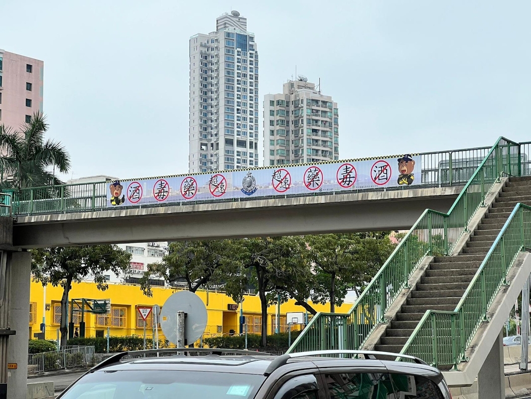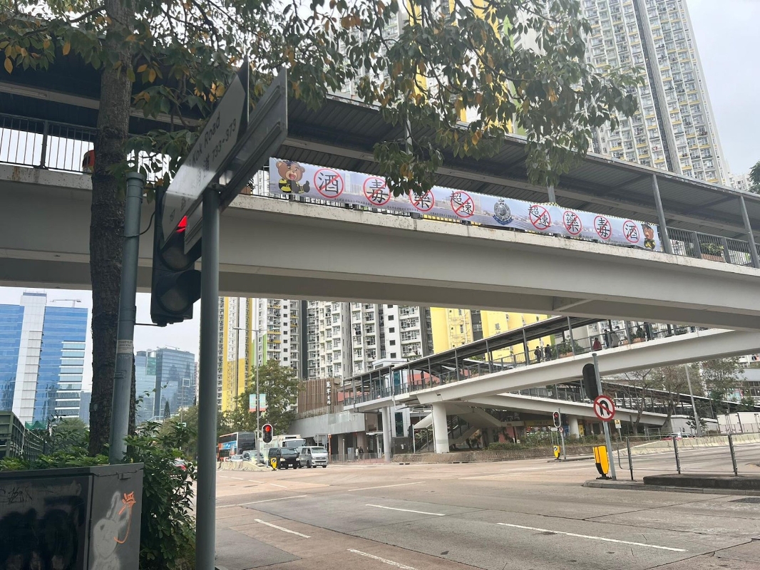 香港新聞網12月19日電 隨着聖誕佳節及新年臨近,香港警方已於15日起,在窩打老道、龍翔道、東九龍走廊等出入西九龍區主要幹道的行人天橋上懸掛大型橫額,提醒司機切勿藥後、酒後或超速駕駛。