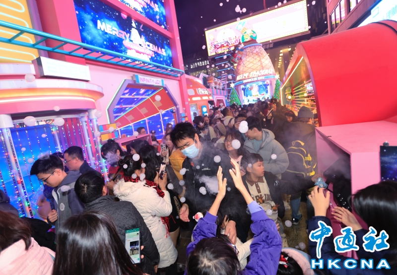 香港尖沙咀海運大廈露天廣場平安夜“飄雪”分享到: