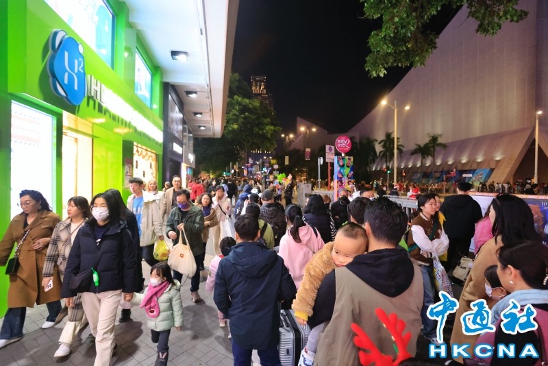 香港中通社12月24日電(記者 陳偉根)12月24日平安夜,香港聖誕節日氣氛濃郁。各區舉辦的慶祝活動,讓香港煥發無窮魅力,吸引了眾多旅客和市民留港消費。為應對人潮,多條巴士路線增加班次,部分港鐵線路更是通宵運行。 到尖沙咀看聖誕燈飾,是香港人過聖誕的傳統節目。今年的尖沙咀海港城巨型聖誕裝置,也如常擺放供市民打卡。 當晚,尖沙咀變成了節日的狂歡中心。下午時分,尖沙咀地鐵站已是人山人海,大批乘客排隊出入閘。香港警方早前預計,平安夜將有26.4萬人到尖沙咀一帶慶祝。 有內地遊客告訴記者,專程來香港感受聖誕氣氛。尖沙咀的聖誕燈飾和節日氛圍讓他們印象深刻。 香港西九龍文化區藝術公園也變身為閃耀的聖誕小鎮。高聳的巨型聖誕樹和維多利亞港美景共同繪製出一幅迷人的圖景。香港市民和旅客紛紛在20米高的聖誕樹下合影留念,欣賞五彩繽紛的水上聖誕煙火和多樣的音樂表演。 中環的蘭桂坊一直是不少市民遊客聖誕必“打卡”的地方。從下午2時起,警方在該區域實施交通管制。