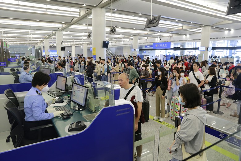 每逢節假日,港珠澳大橋珠海口岸就會持續迎來通關客流高峰。香港中通社資料圖