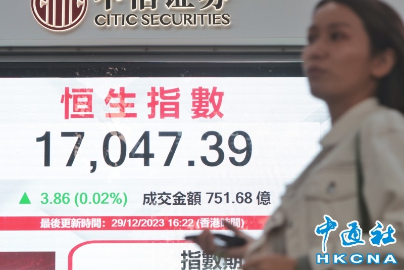 香港新聞網12月29日電 (記者 崔靜雯)港股在2023年最後一個交易日好淡爭持,29日恒生指數收市報17047點,升3.8點或0.02%。總結全年,恒指累計跌2734點,跌幅13.8%。