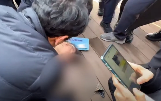 李在明遇襲後倒地。視頻截圖