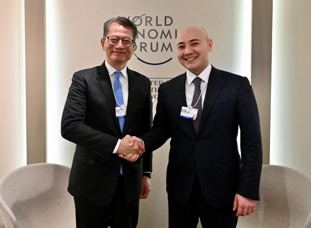 陳茂波(左)與哈薩克斯坦國民經濟部部長(右)會面。圖源:政府新聞處。 陳茂波在特區政府商務及經濟發展局局長丘應樺陪同下,與多個來自中東、中亞等地區國家負責財金和經濟的官員會面,包括巴林財政與國民經濟部部長和工商部長、卡塔爾財政部長,以及哈薩克斯坦國民經濟部部長。 陳茂波在上述雙邊會面上指出,香港作為高質量共建“一帶一路”倡議的節點平台,在推進區域金融聯通、擴大貿易、促進文化交流等方面,可發揮獨特的作用和貢獻。他指,近年中東和中亞地區國家積極推動經濟多元發展及綠色轉型,他歡迎它們利用香港高效穩健的金融市場,助力企業和項目的發展、推展和籌融資,在互利共贏的合作之中一同實現更好的發展。 此外,陳茂波和丘應樺也與意大利經濟和財政部部長及秘魯中央儲備銀行行長會面,就當前環球金融環境、地緣政治局勢及綠色轉型等議題進行交流。 陳茂波中午在一個午餐會發表主題演講。他致辭時指,國家堅持對外開放,經濟穩健前行,在科技和產業鏈配置上秉持國際合作,將持續為世界經濟發展提供強大動力。香港憑著“一國兩制”的獨特優勢,正致力鞏固和提升國際金融中心的地位,推進國際創科中心的建設,發揮聯繫國家和世界的橋樑角色,促進更多互利共贏合作。 晚上,陳茂波出席了世界經濟論壇年會中國之夜,並於晚宴致辭,介紹香港如何利用其聯繫人、橋樑和門戶的角色,助力中國和亞洲的經濟發展。(完) 【編輯:譚暢】