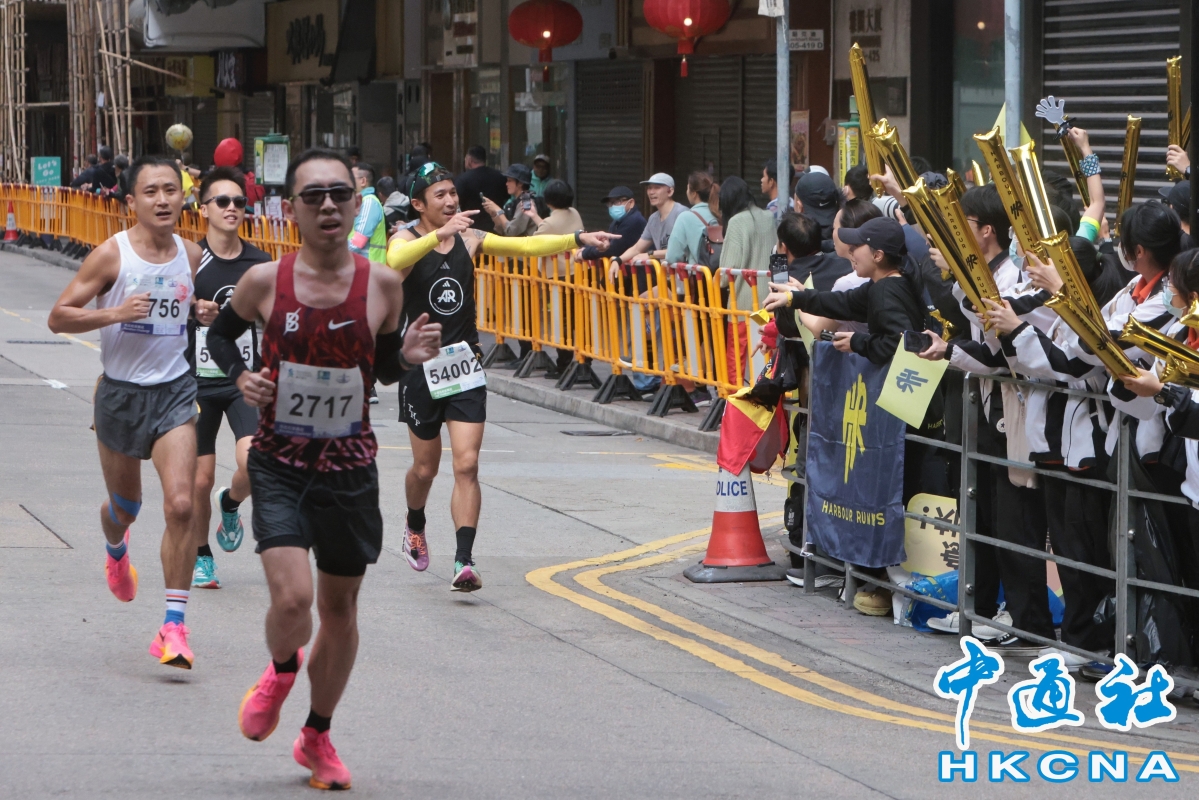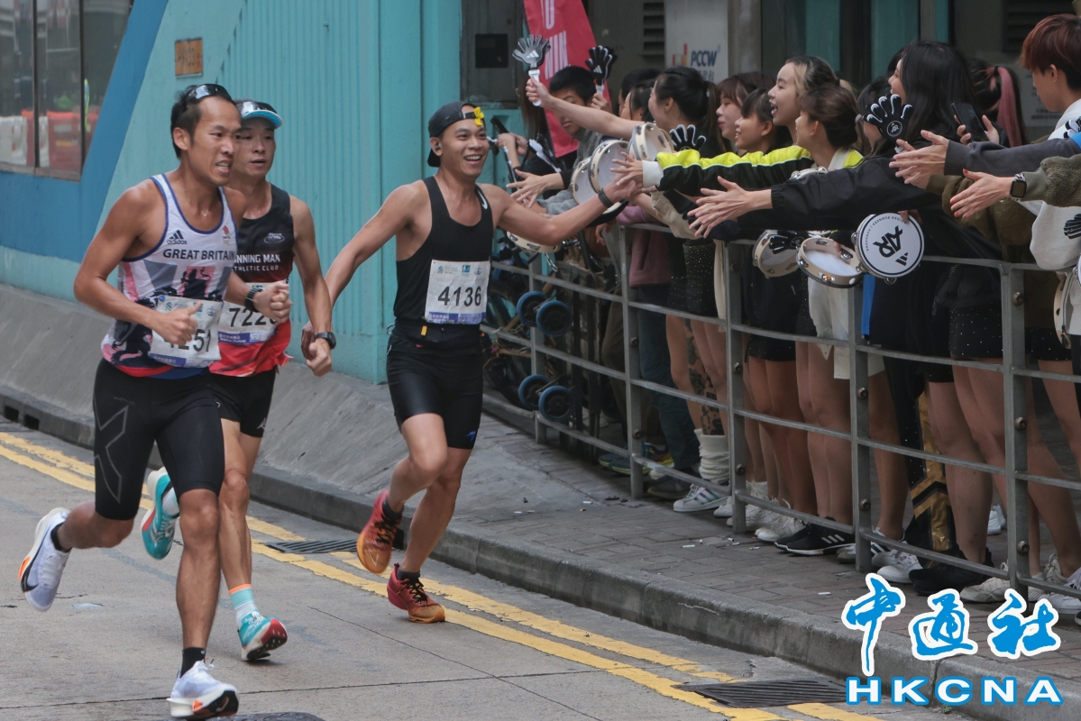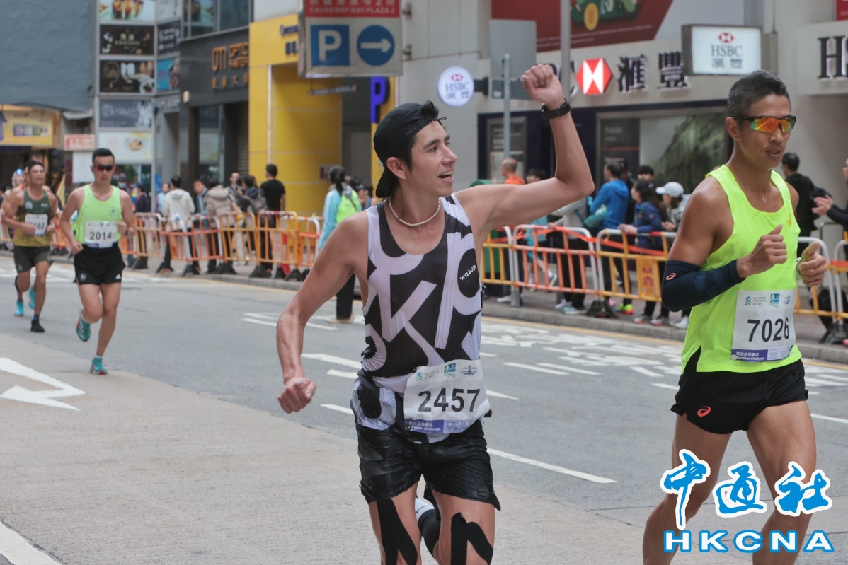 (香港中通社記者 謝光磊 攝) 至今早10時許,部分半馬及10公里賽事已經完成。率先決出冠軍的10公里賽,男子組由19歲北京跑手陳雨繁,以30分58秒的成績奪得冠軍;女子組就由去年半馬季軍香港跑手曾曉彤以36分46秒奪冠,並打破個人最佳成績。