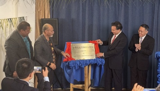 中國駐瑙魯使館復館小組舉行升國旗儀式分享到: