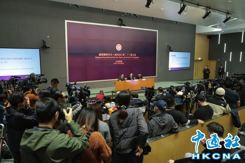 他指出,特區政府建議訂立全新的《維護國家安全條例》,以全面應對特區現在或未來可能出現的國家安全風險,及全面落實中國全國人大“5.28決定”和香港國安法規定的憲制責任和義務。 李家超介紹,23條立法將新增“境外干預罪”,禁止任何人配合外國勢力干預香港選舉、立法及司法機關等。另外亦會在不誠實取用電腦的基礎上引入新罪行,針對透過電子系統危害國安的行為。 李家超強調,立法將有三項原則。第一是“一國兩制”方針的最高原則,維護國家主權、安全、發展利益;第二是尊重和保障人權,第三是對於危害國家安全的行為和活動,應當按法治原則,堅持積極預防和依法懲治。 他指出,本次政府制定的建議,是綜合考慮香港現時的法律、實際情況和大量外國相關法律,包括將一些普通法罪行改為成文法。 在公眾諮詢期內,特區政府將辦多場諮詢,包括向外國領事、外國商會解說文件內容。李家超期待市民於諮詢期結束前,即2月28日前提出意見。 李家超強調,希望可以盡快完成第23條立法,將這個纏繞香港26年的問題寫上句號,讓香港可以盡早全神貫注,聚焦拚經濟、拚發展,讓市民分享更多經濟紅利。(完) 附:維護國家安全:《基本法》第二十三條立法 公眾諮詢文件(全文)