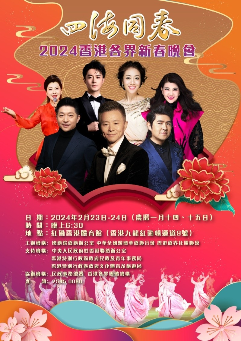 香港新聞網2月7日電 由國務院僑務辦公室、中華全國歸國華僑聯合會和香港僑界社團聯會合辦的“四海同春”2024 香港各界新春晚會,將於本月23日和24日一連兩晚假座紅磡香港體育紅館隆重上演。演出的支持機構包括中央人民政府駐香港聯絡辦公室和香港特別行政區政府民政及青年事務局、文化體育及旅遊局;協辦機構為香港特別行政區政府民政事務總署和195個團體機構。 港僑聯會會長兼新春晚會總統籌黃楚基說,由於新冠疫情,“四海同春”與香港觀衆久違四年,今次復辦適逢香港昂然進入“由治及興”的新階段,加上2024年我們將共同迎來中華人民共和國成立75周年及本會成立20周年,所以今年的演出別具非凡意義。