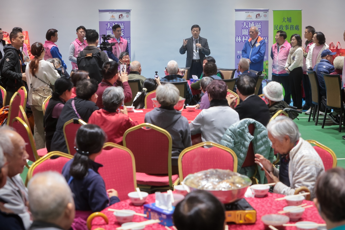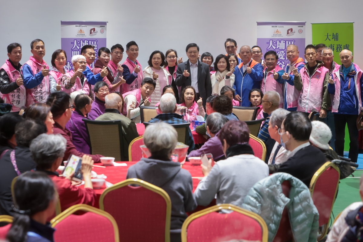 李家超和一眾長者打招呼,向長者提早拜年,祝願他們龍精虎猛、龍騰高飛