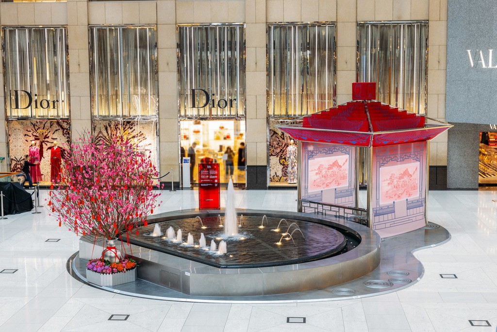“時光亭”和“福臨廊”以中國傳統建築為靈感。(圖片:主辦方提供) 讀者可能對王令塵(Oscar Wang)這個名字陌生,但這位跨領域藝術家的母親正是在華語影壇有著重要地位的張艾嘉。一直以來,Oscar遊走於內地香港兩地,今年中環置地廣場農曆新年裝置由他操刀。“時光亭”和“福臨廊”由跨領域藝術家Oscar及創意工作室Open Work設計,以中國傳統建築為靈感。“時光亭”以不銹鋼為主結構,在薄紗螢幕上投影出電子動畫,結合現代技術與傳統文化。 太古廣場“新春多彩朝氣園林”