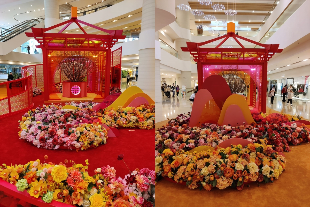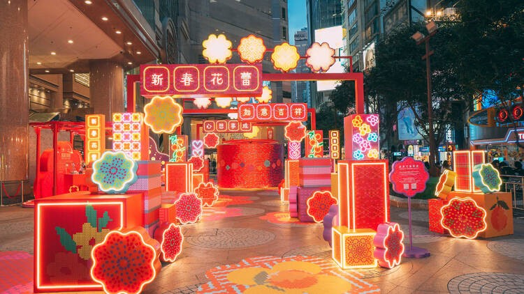 太古廣場“新春多彩朝氣園林”。(香港中通社記者 黃璇攝) 由即日起至2月25日,太古廣場與灣仔星街小區以中國傳統園林為靈感,糅合現代設計手法,打造出4大新春打卡位,當中包括設有3.5米高巨型桃花樹的“新春色彩庭園”、“光影花藝亭”、“幸運庭園”及“星街小區花燈走廊”。另外,商場內亦推出色彩繽紛的“新春多彩”利是封,凡購買滿指定金額即可免費換領。 海港城“HELLO KITTY · HAPPY 50 @海港城”