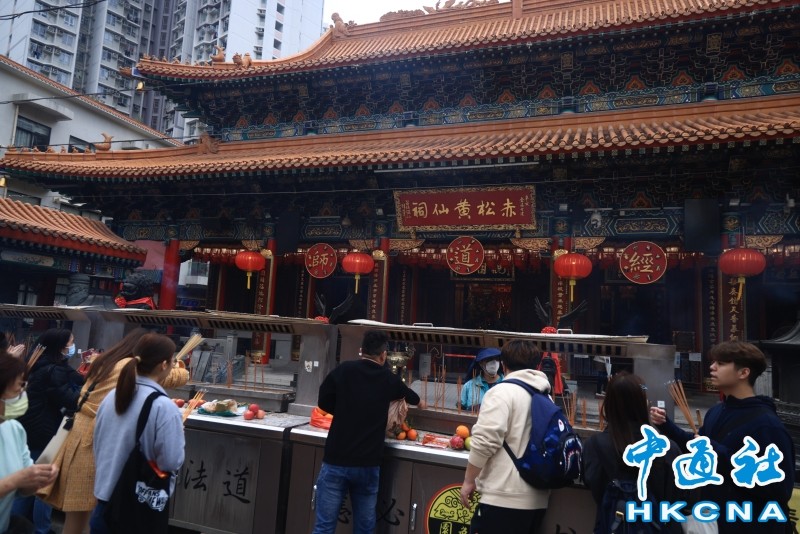 香港中通社2月9日電(記者 譚暢)儘管香港天色稍陰,但時值除夕,人們喜迎農歷新年的心情反倒越發晴朗。2月9日,香港嗇色園黃大仙祠將通宵開放,以便市民遊客在除夕夜上“頭炷香”。