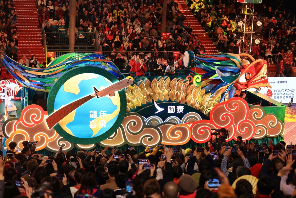 香港新聞網2月10日電(記者 許其皓)2月10日農曆大年初一晚,“新春國際匯演之夜”於香港尖沙咀上演,為龍年打響頭陣送上新春祝福。今年匯演主題是“龍騰香港賀新歲”,象徵香港祥龍騰飛,氣勢如虹,合共有九輛花車,以及近三十支來自香港、內地和世界各地的表演隊伍,薈萃精采表演迎接龍年,為市民和旅客獻上精彩絕倫的國際匯演,展示香港中西文化匯聚的多元特色,更展現香港高度國際化的非凡魅力。