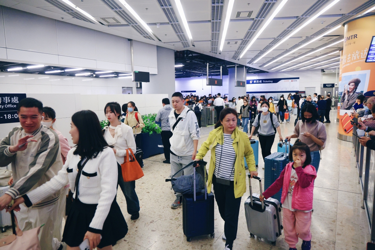西九龍高鐵站大批人流抵港 【編輯:曹文毓】